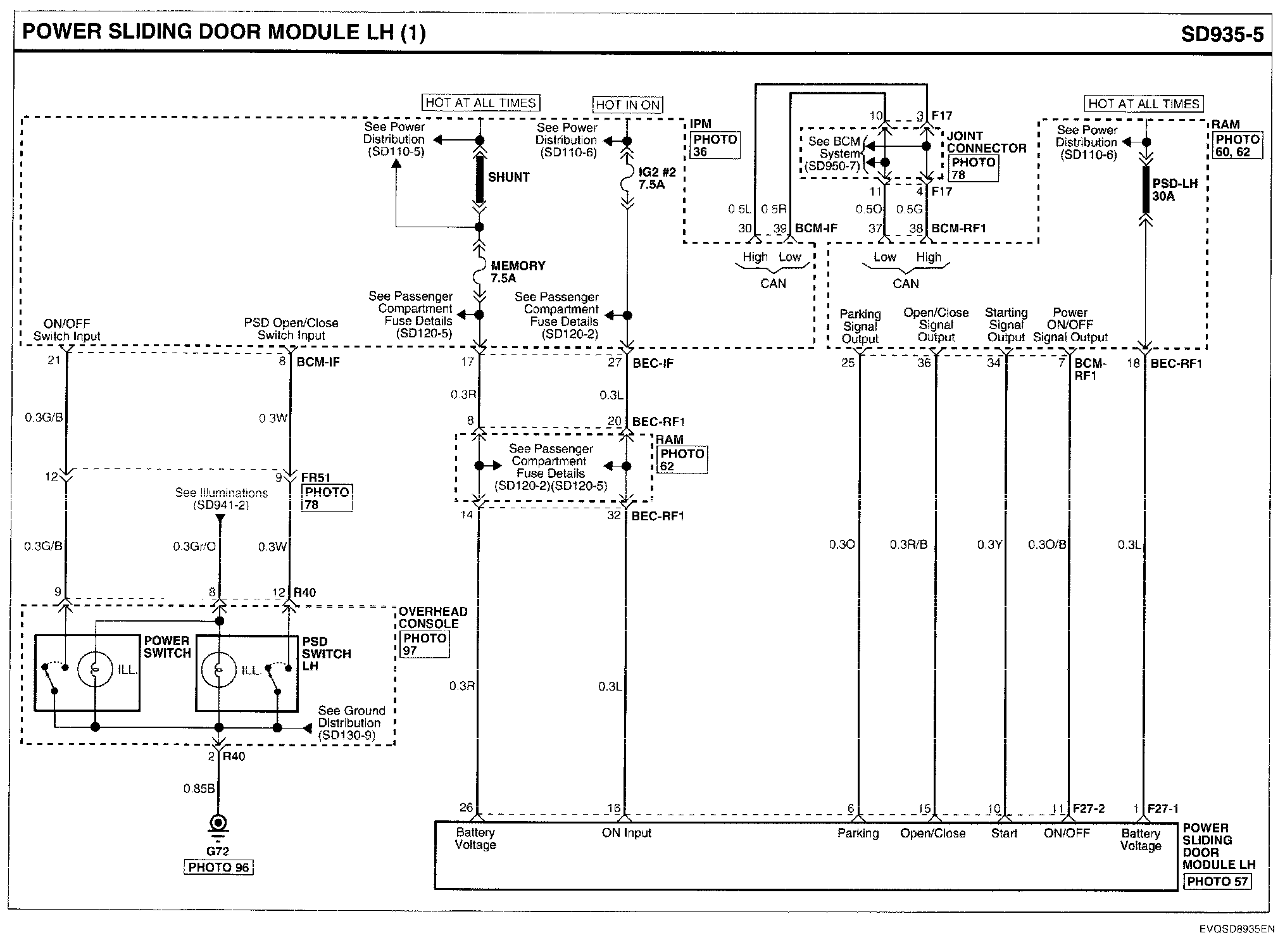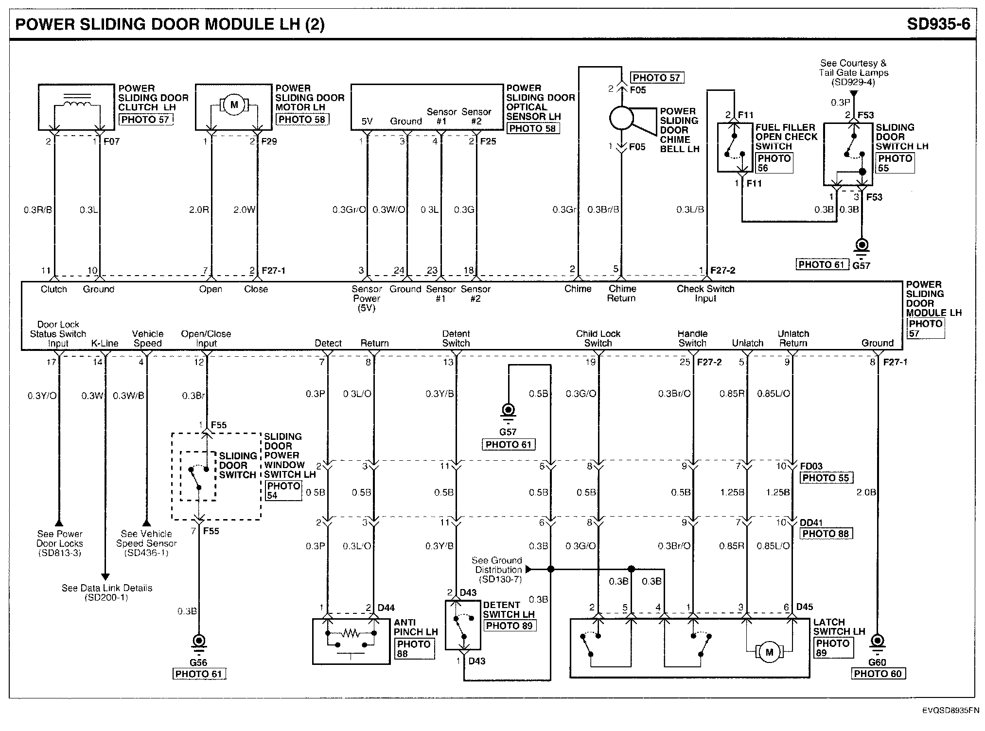 Power Sliding Door Module LH Connector Pin Outs: