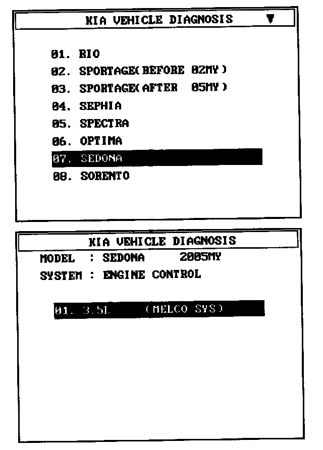 1. Select "Vehicle" and "Engine" (For example, SEDONA 3.5 L V 6).