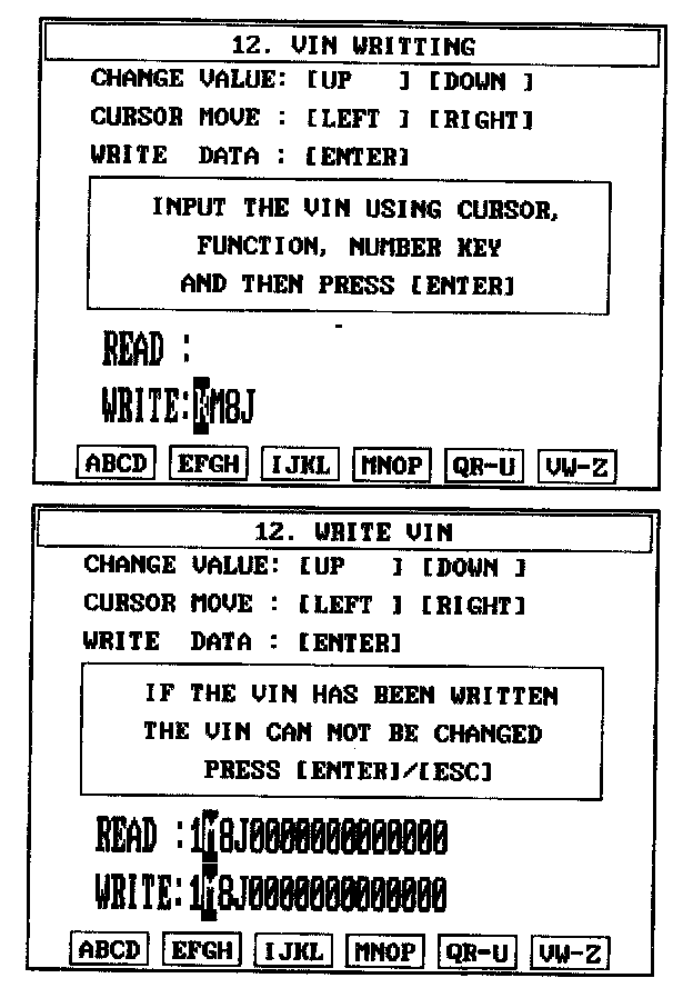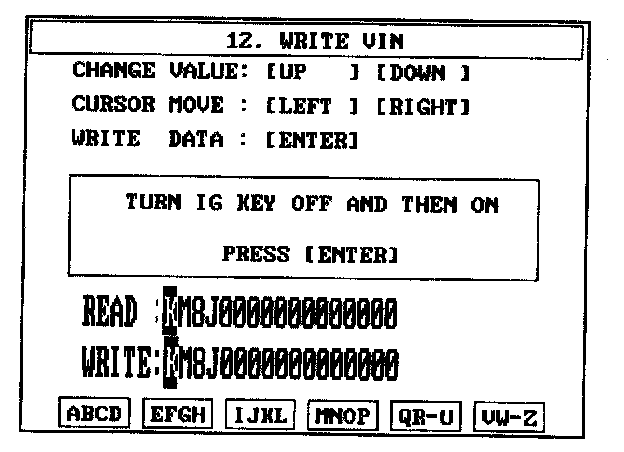 4. Write the VIN with cursor, function and number keys.