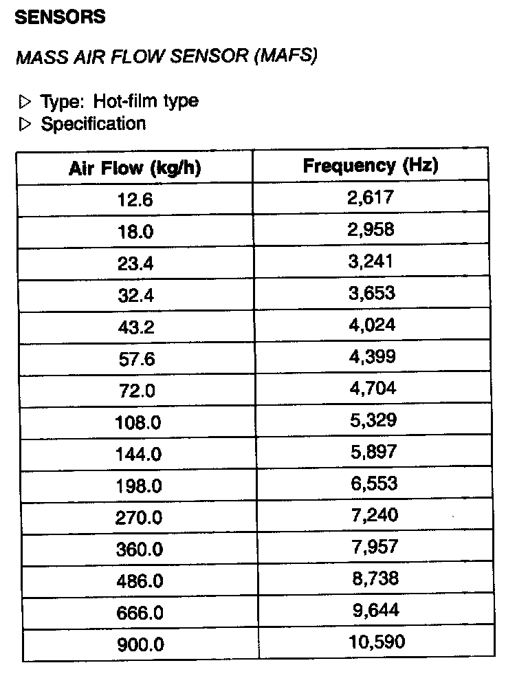 Mass Air Flow Sensor (MAFS) - Specification: