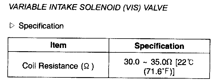 Variable Intake Solenoid (VIS) Valve - Specification: