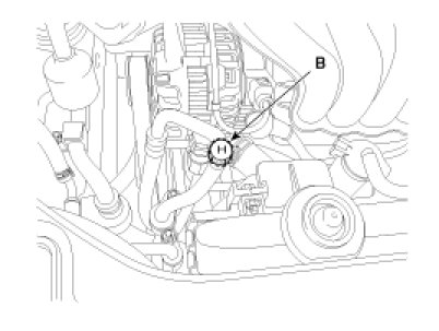 Recovery/ Recycling/ Charging System (A) to the high-pressure service port (B) as shown, following the equipment manufacturer's instructions.