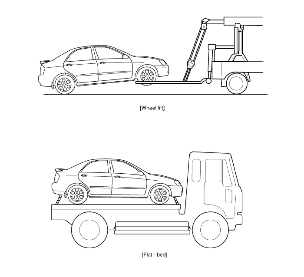 If the vehicle needs to be towed, a wheel lift or as flat-bed method is recommended.