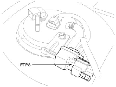 The evaporative emission control system prevents hydrocarbon vapors from escaping from the fuel tank into the atmosphere where they could form photochemical smog. Gasoline vapors are collected in the charcoal canister. The Fuel Tank Pressure Sensor (FTPS) is installed on fuel pump assembly and is an integral part of the evaporative monitoring system. The ECM monitors the FTPS signal to detect vacuum decay and excess vacuum. The FTPS measures the difference between the air pressure inside the fuel tank and atmospheric air pressure to check the purge control solenoid valve operation and for leak detection in the evaporative emission control system by monitoring pressure and vacuum levels in the fuel tank during the purge control solenoid valve operating cycles.