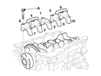 (2) Install and uniformly tighten the 10 bearing cap bolts(A), in several passes, in the sequence shown.