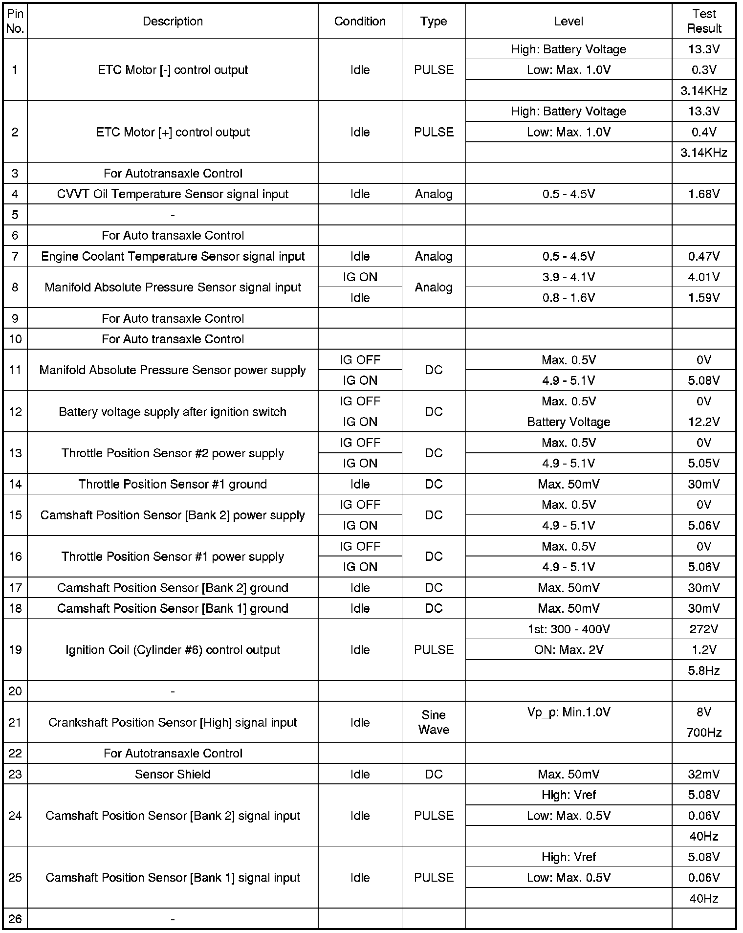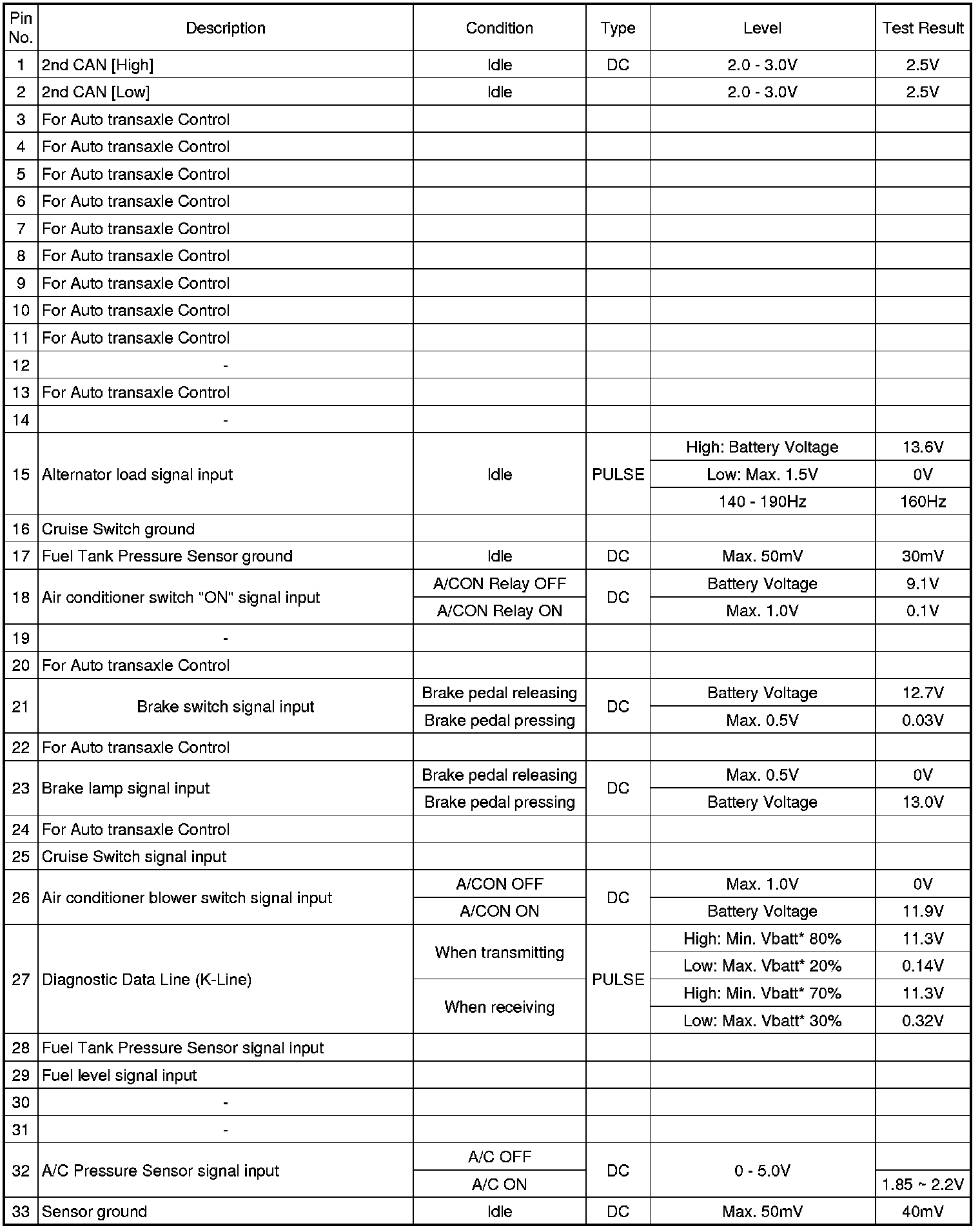 PCM TERMINAL INPUT/OUTPUT SIGNAL