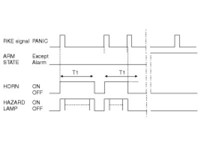 (1) PANIC alarm is turned ON for T1 by using horn and hazard if RKE PANIC signal is received.