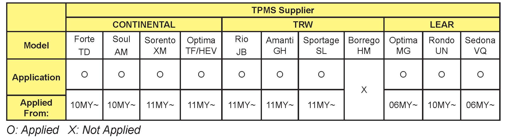 TPMS single lamp system applicable models: