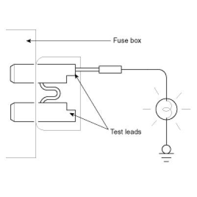 CHECK FUSESA blade type fuse test taps provided to allow checking the fuse itself without removing if from the fuse box. The fuse is good if the test lamp lights up when one lead is connected to the test taps (one at a time) and the other lead is grounded. (Turn the ignition switch so that the fuse circuit becomes operative)