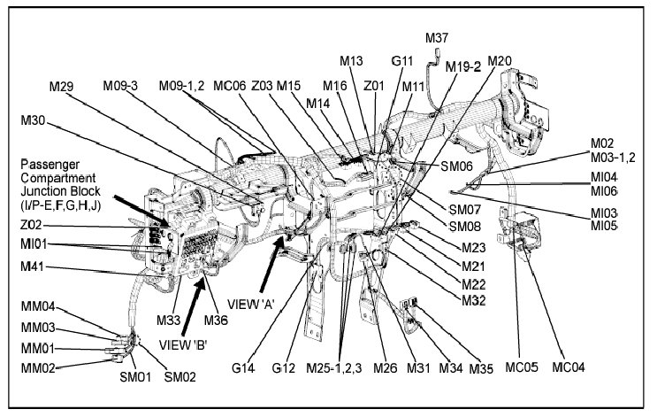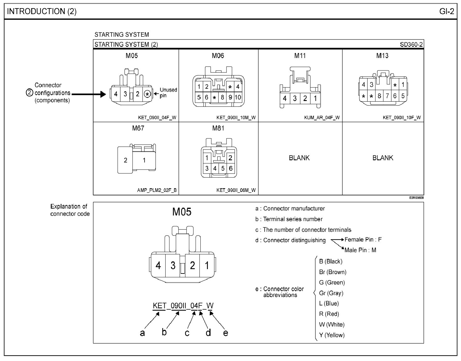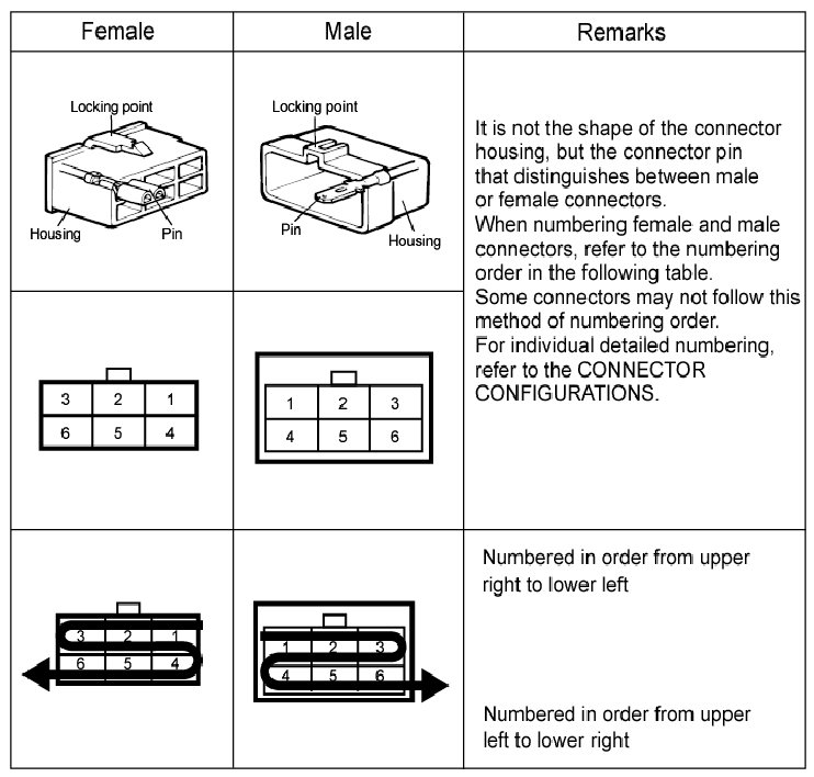 - It shows the front of the connector on the harness side when not to the harness connector. The terminal number on each connector can be obtained by following the pattern used in (5) connector view and numbering order. Unused terminals are marked with an asterisk (*).