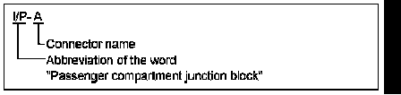 A junction block identification symbol consists of a wiring harness location classification symbol corresponding to a wiring harness location and number corresponding to the connector in the junction block.