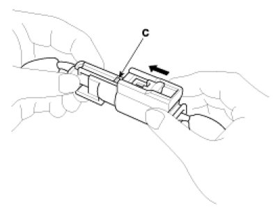 Hold both connector halves and press firmly until the projection (C) of the sleeve-side connector clicks to lock.
