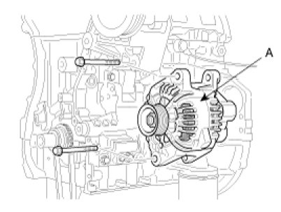 4. Pull out the through bolt and then remove the alternator(A).