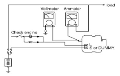 3. Run the engine at a speed of about 2,500 rpm and read the voltmeter when the alternator output current drops to 10A or less