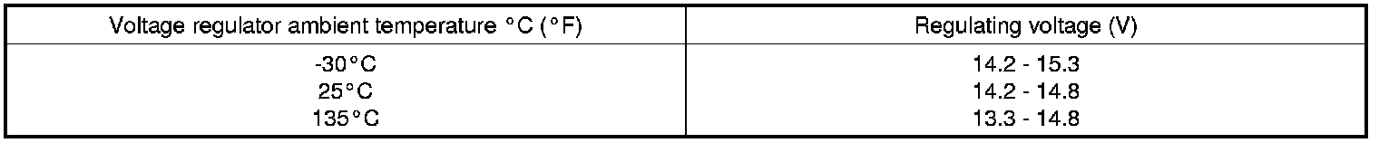 1. If the voltmeter reading agrees with the value listed in the regulating voltage table below, the voltage regulator is functioning correctly. If the reading is other than the standard value, the voltage regulator or the alternator is faulty.