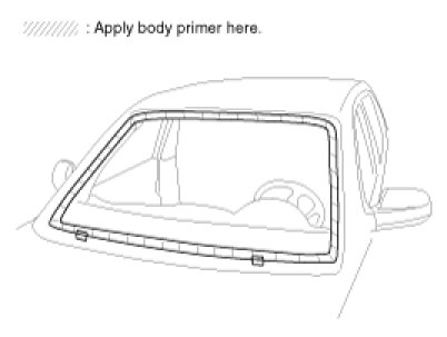 6. With a sponge, apply a light coat of body primer to the original adhesive remaining around the windshield opening flange. Let the body primer dry for at least 10 minutes.