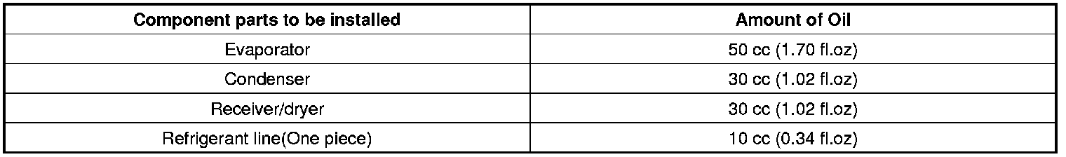 2. Compressor (PAG) oil varies according to compressor model. Be sure to use oil specified for the model of compressor.