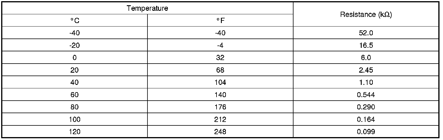4. After immersing the thermistor of the sensor into water (or engine coolant), measure resistance between OTS terminals 1 and 2.