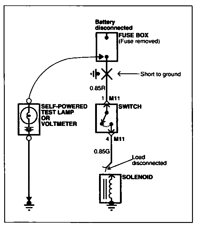 CAUTION: Never use a self-powered test lamp on circuits that contain solid state modules. Damage to these modules may result.
