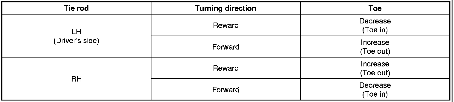 3. Adjust the toe by screwing or unscrewing the tie rod. Toe adjustment should be made by turning the right and left tie rods by the same amount.