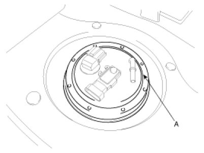 4. Unscrew the fuel pump plate cover (A) with the special service tool (SST No.: 09310-2B200) and remove the fuel pump assembly.