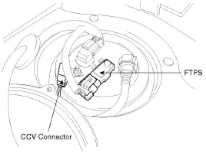 The evaporative emission control system prevents hydrocarbon vapors from escaping from the fuel tank into the atmosphere where they could form photochemical smog. Gasoline vapors are collected in the charcoal canister. The Fuel Tank Pressure Sensor (FTPS) is installed on fuel pump assembly and is an integral part of the evaporative monitoring system. The ECM monitors the FTPS signal to detect vacuum decay and excess vacuum. The FTPS measures the difference between the air pressure inside the fuel tank and atmospheric air pressure to check the purge control solenoid valve operation and for leak detection in the evaporative emission control system by monitoring pressure and vacuum levels in the fuel tank during the purge control solenoid valve operating cycles.