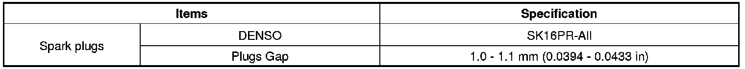 Spark Plug: Specifications