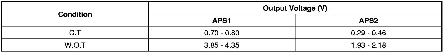 2. Start engine and check output voltages of APS 1 and 2 at C.T and W.O.T.