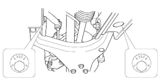 Each numerical point indicated on the spindle increases the camber by 0.18 degrees when turned to the vertical line on the spindle bracket.