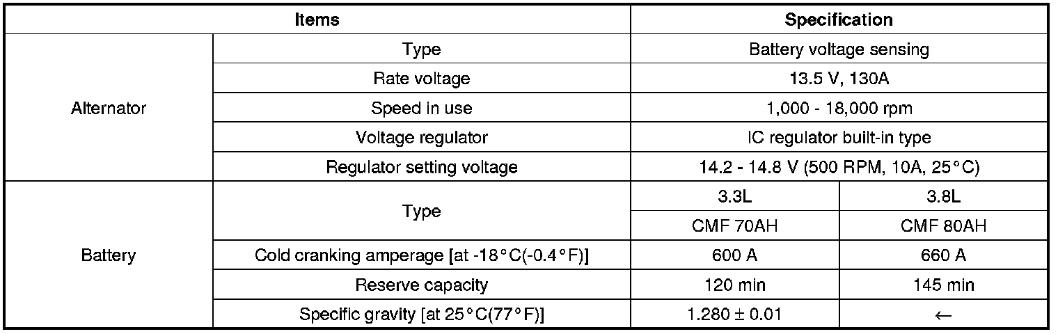 Home >> Kia >> 2008 >> Sorento 2WD V6-3.3L >> Repair and Diagnosis >> Specifications >> Electrical Specifications >> Charging System >> System Specifications