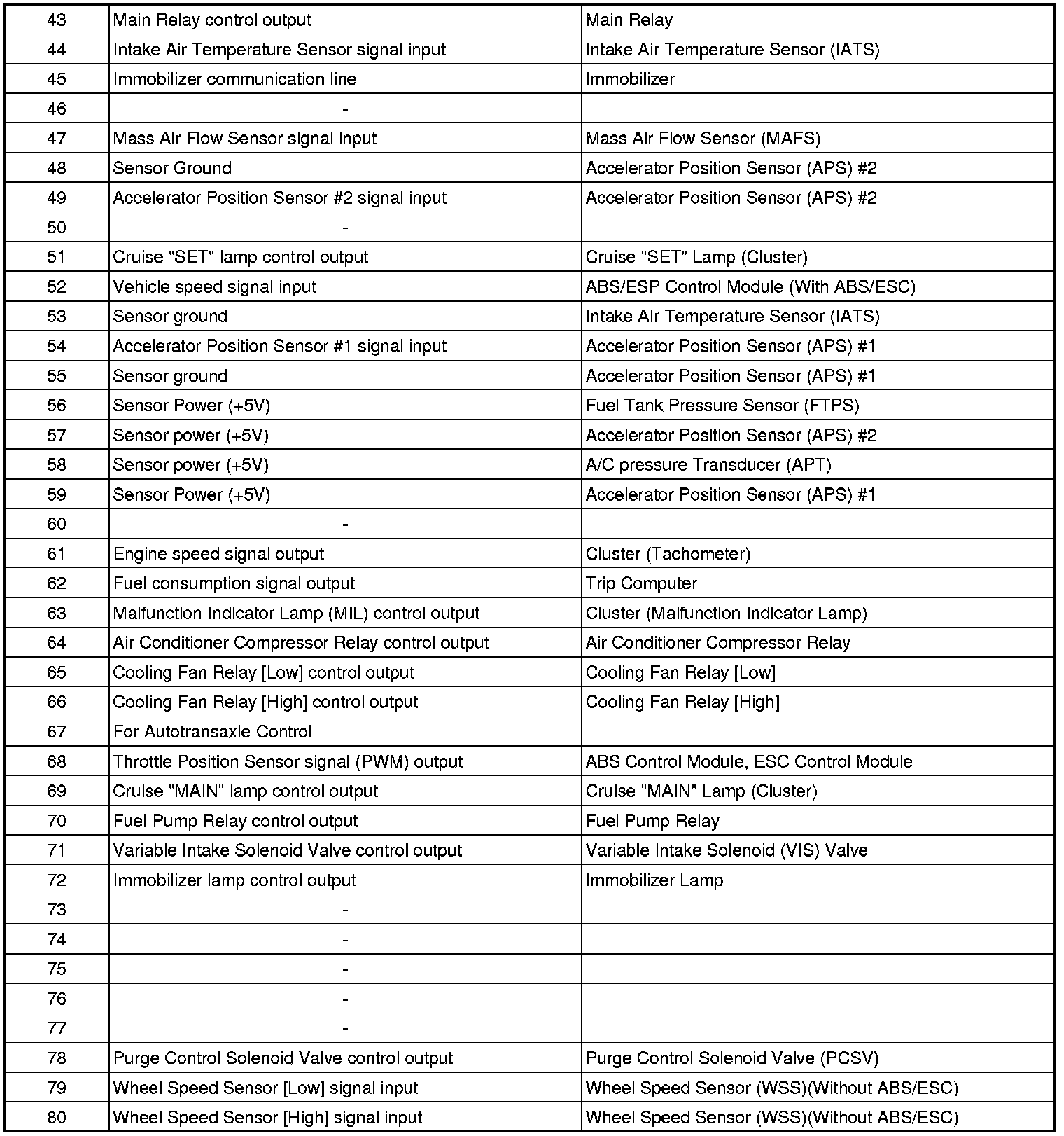 ECM TERMINAL INPUT/OUTPUT SIGNAL