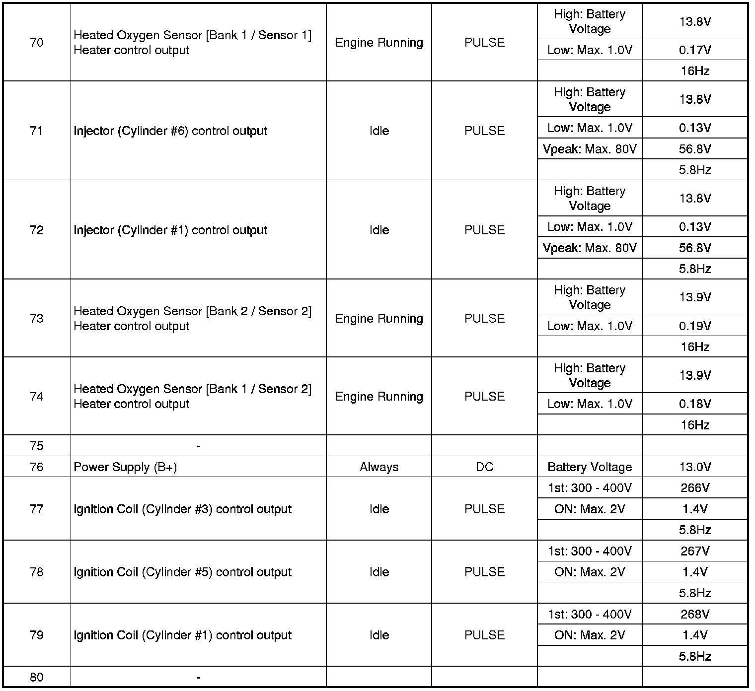 Pinout Values and Diagnostic Parameters