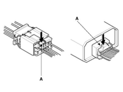 8. Before connecting connectors, make sure the terminals (A) are in place and not bent.