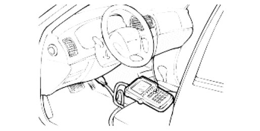 1. To store transmitter code, connect Hi-scan adapter to the OBD connector (16 pin) in driver side crash pad lower panel, turn the power on Hi-scan.