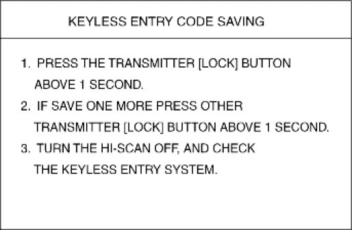 4. After removing the ignition key from key cylinder, push "ENTER" key to proceed to the next mode for code saving.