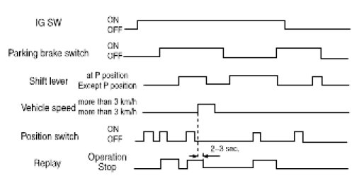 4. Memory setting cannot be performed if the vehicle speed is more than the specified one or shift lever is not in the P position when the parking brake is released.