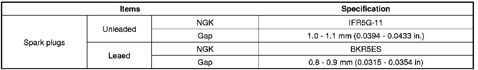 Spark Plug: Specifications