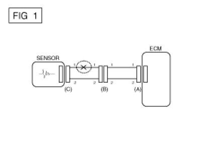 A. With each connector still connected, measure the voltage between the chassis ground and terminal 1 of each connectors (A), (B) and (C) as shown in [FIG. 4].