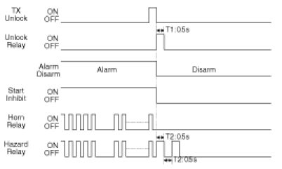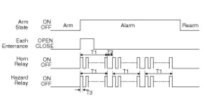 When the system is set off, the alarm (horn) sounds and the hazard lamp flash for about two minutes or until the system is disarmed by unlocking the transmitter.