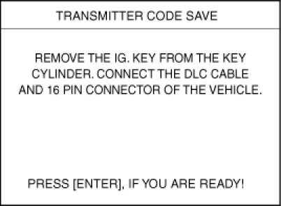 4. After removing the ignition key from key cylinder, push "ENTER" key to proceed to the next mode for code saving. Follow steps 1 to 4 and then code saving is completed.