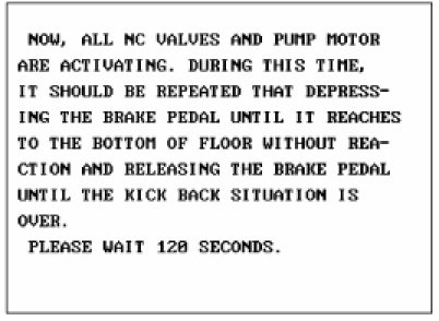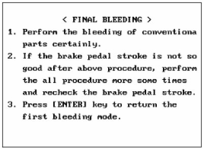 This procedure should be followed to ensure adequate bleeding of air and filling of the ABS unit, brake lines and master cylinder with brake fluid.