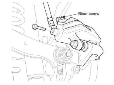 5. Pump the brake pedal several times, and then loosen the bleeder screw until fluid starts to run out without bubbles. Then close the bleeder screw.