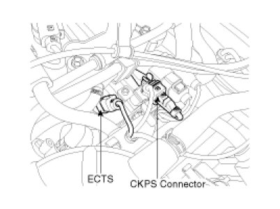 Engine Coolant Temperature Sensor (ECTS) is located in the engine coolant passage of the cylinder head for detecting the engine coolant temperature. The ECTS uses a thermistor whose resistance changes with the temperature. The electrical resistance of the ECTS decreases as the temperature increases, and increases as the temperature decreases. The reference 5 V in the PCM is supplied to the ECTS via a resistor in the PCM.That is, the resistor in the PCM and the thermistor in the ECTS are connected in series. When the resistance value of the thermistor in the ECTS changes according to the engine coolant temperature, the output voltage also changes. During cold engine operation the PCM increases the fuel injection duration and controls the ignition timing using the information of engine coolant temperature to avoid engine stalling and improve drivability.