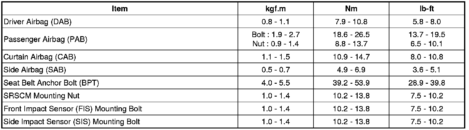 Tightening Torques