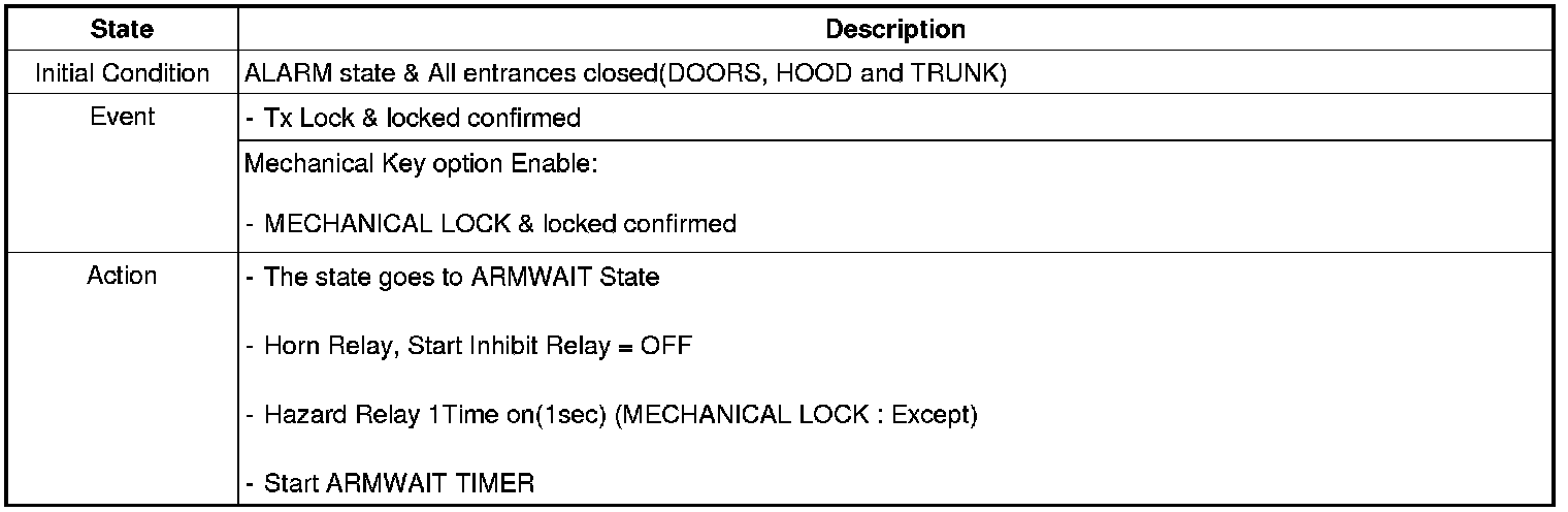 (3) PANIC alarm is turned ON with continuing antitheft function when PANIC signal is received in ARM stand-by / ARM / Alarm end / RELOCK stand-by mode.