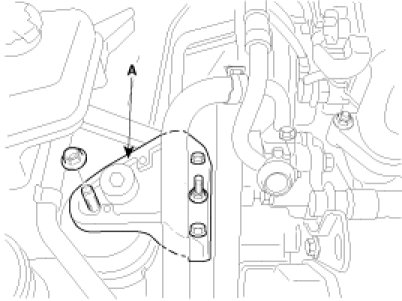 (5) Install the auto tensioner(A) to the front case with the set-pin inserted.