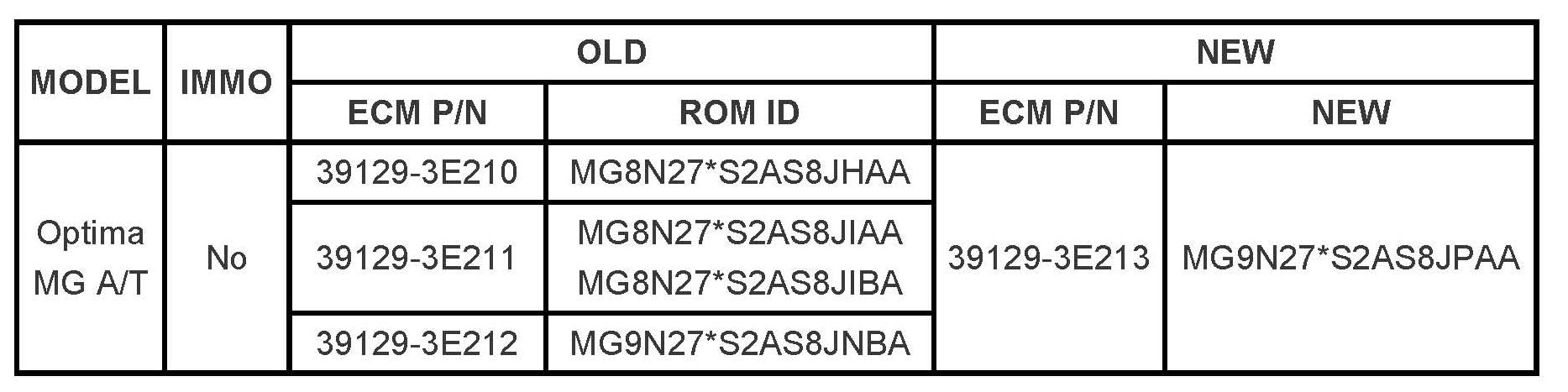 This bulletin provides information related to the PCM software upgrade of 2009~2010 Model Year Optima (MG) equipped with 2.7L engines and automatic transmission produced prior to 8/31/2009, which may experience an average fuel consumption display error. Some customers may complain the average fuel consumption on the IP cluster does not work correctly.