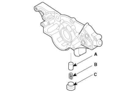 Assembly the relief spring(B) and the relief plunger(A) and tighten the plug(C).