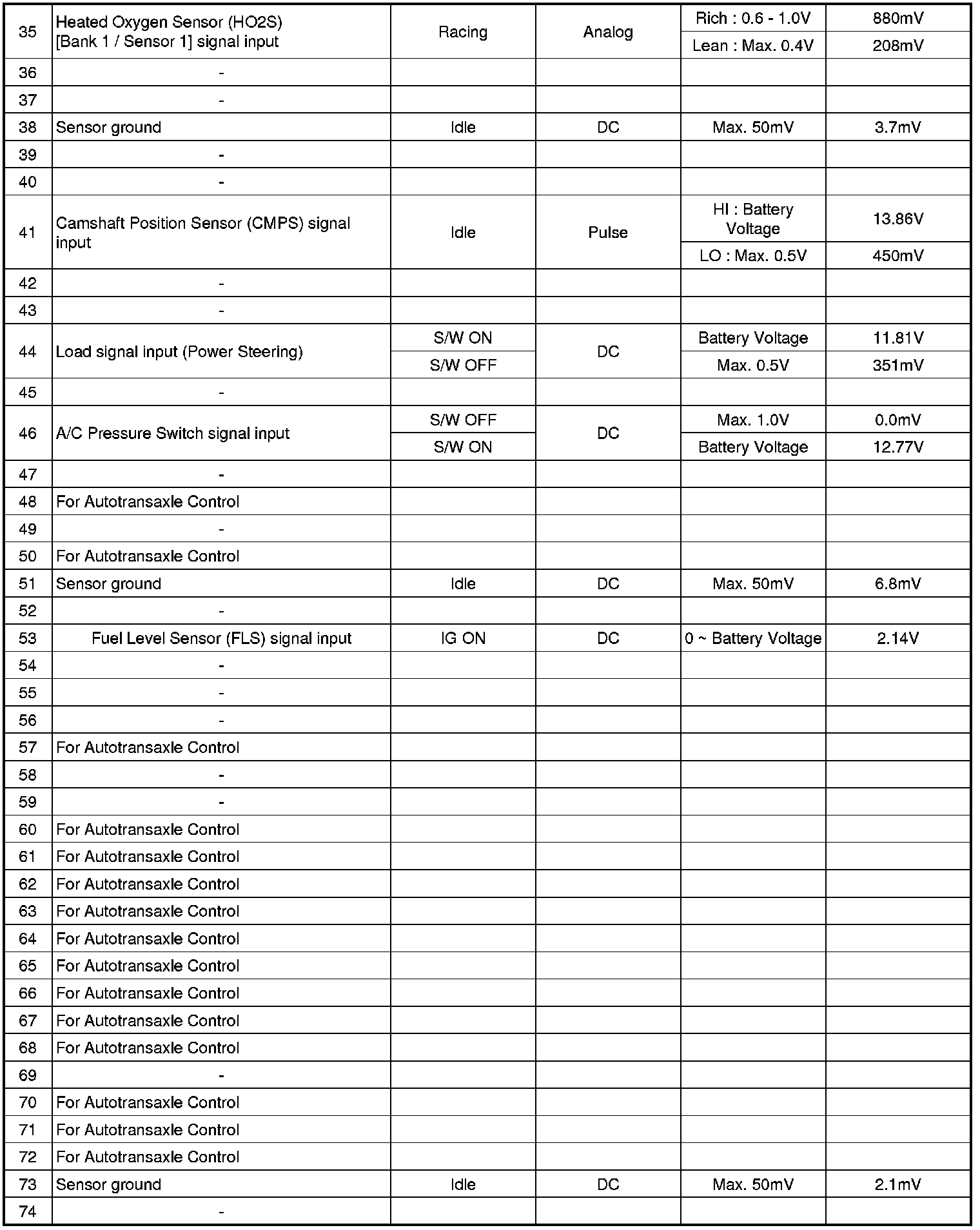 3. PCM TERMINAL IN/OUT SIGNAL (A/T)