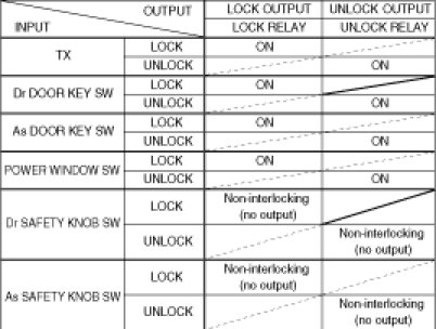 (11) During LOCK output, when receiving LOCK signal by TRANSMITTER, KEY, POWER WINDOW SWITCH, Don't output LOCK.